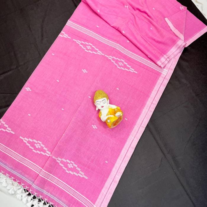 Soft premium khadi cotton handloom saree featuring elegant tassels on the palla. Lightweight, breathable and perfect for everyday and casual wear.